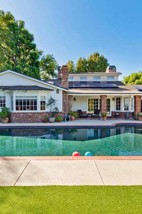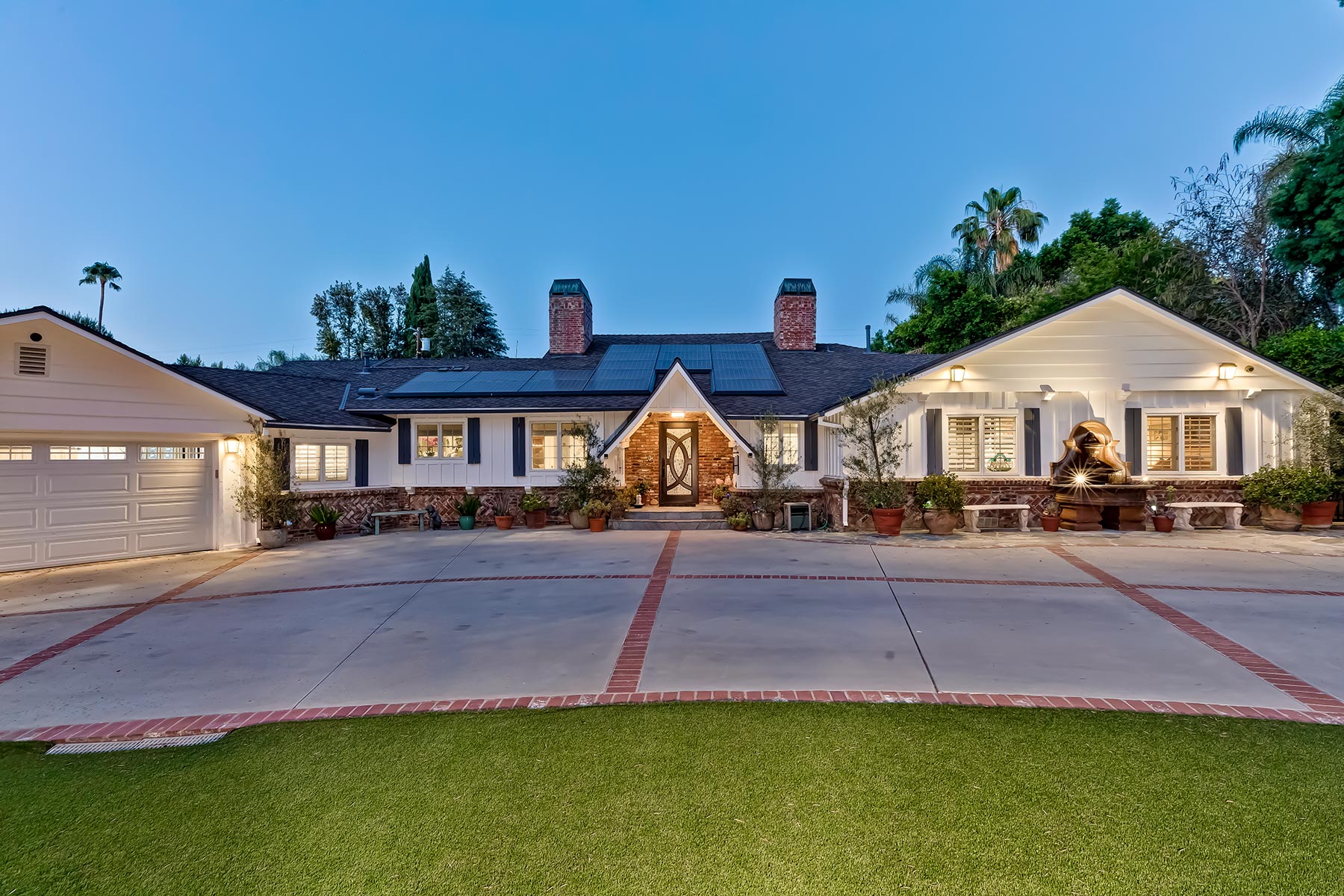 This spectacular eco-friendly one story has 4 bedrooms, 4 bathrooms, is completely private and gated, a California smart home with control 4 smart home system throughout, includes a sound system in every room, cameras, newer central heat and air. This is a beautifully appointed home and features a huge master suite with high ceilings, lots of closets and a gas fireplace. Eco- friendly and sustainably built for that buyer who wants to live clean and green. High vaulted ceilings throughout, hardwood and imported tile floors, crown moulding, 3 brick gas fireplaces, top of the line chef's kitchen with 2 Miele ovens and a Subzero fridge and wine cooler. Water purification system throughout, crown moulding, exquisite high end bathrooms with imported finials, plus a beautiful outside pool bathroom. Light open floor plan. This 18,000 large lot is beautifully landscaped, including 7000 sq ft of turf. Lots of delicious fruit trees. Large swimmer's pebble-tec salt water pool is 5 ft across, brand new solar panels. South of the Ventura Blvd. Most convenient location for all your needs. Everything is elegantly remodeled and was completed in 2019. This stunning eco-friendly home is indoor/outdoor living at its finest.